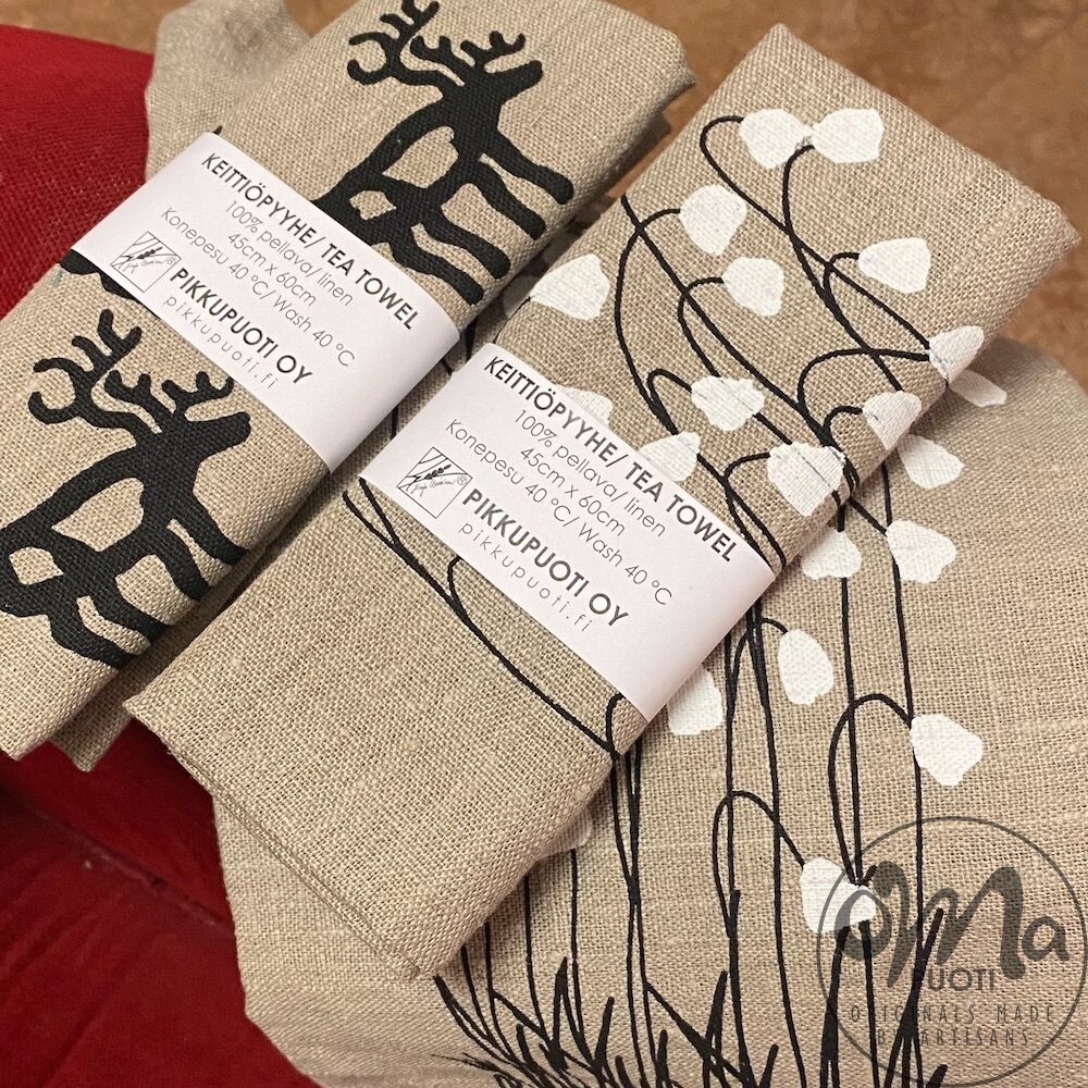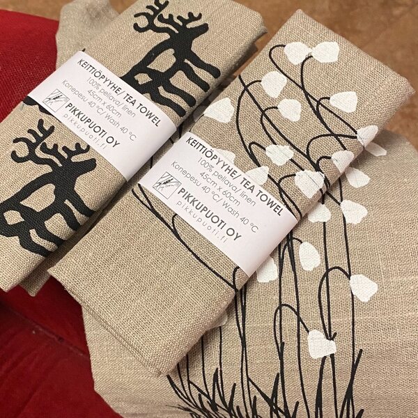 Hier sehen Sie finnische Bankbezüge aus 100% Leinen aus der Kollektion Pikkupuodi.