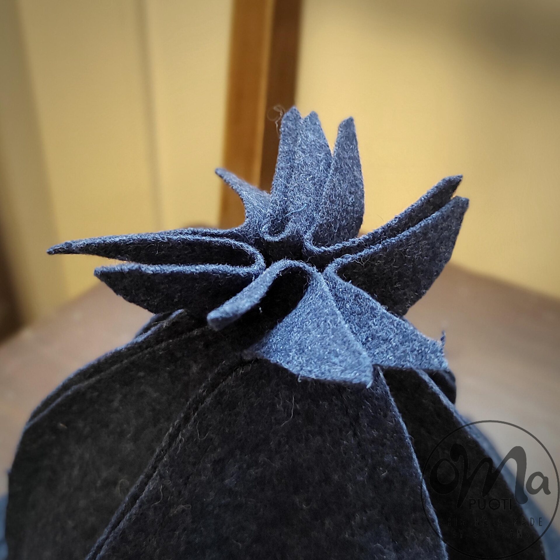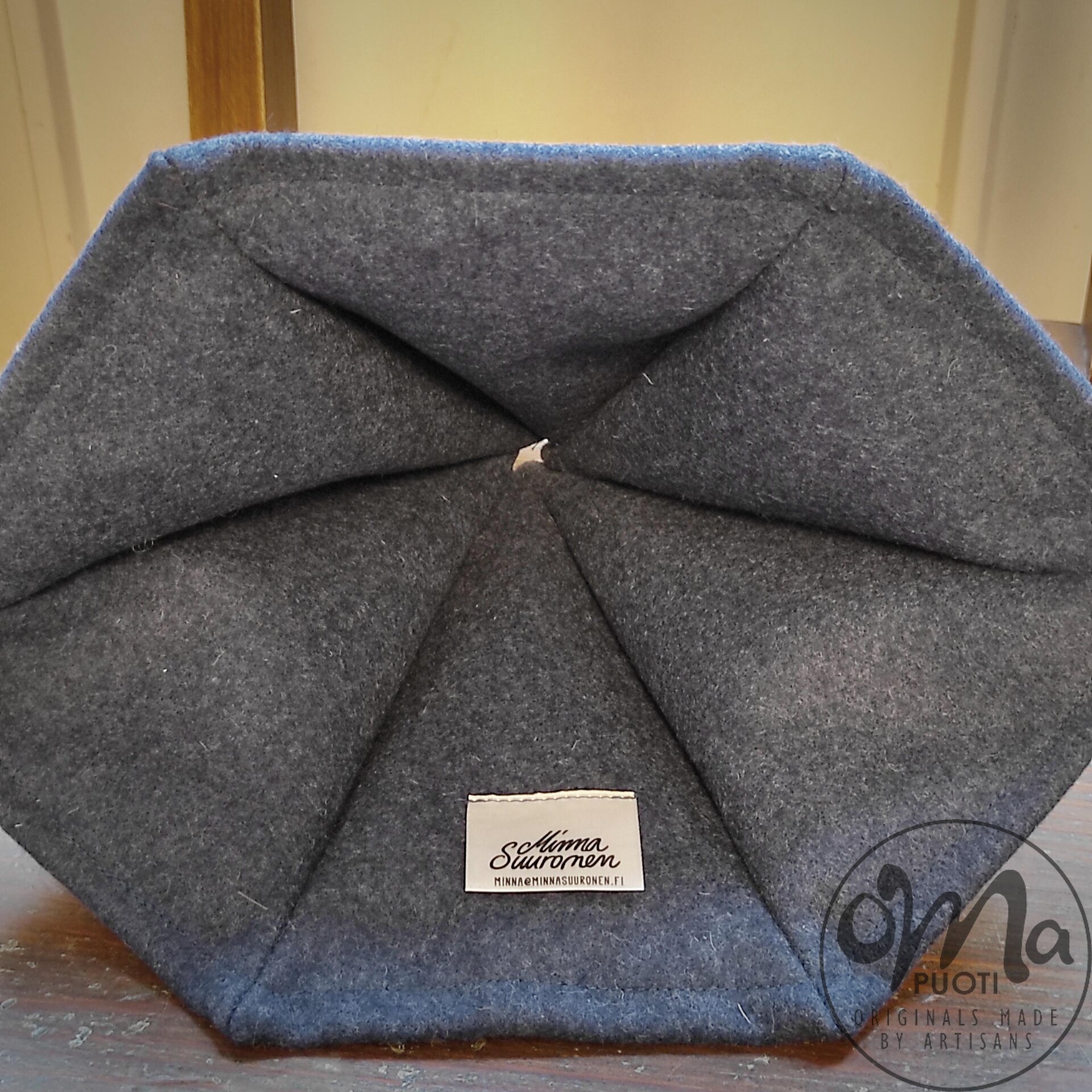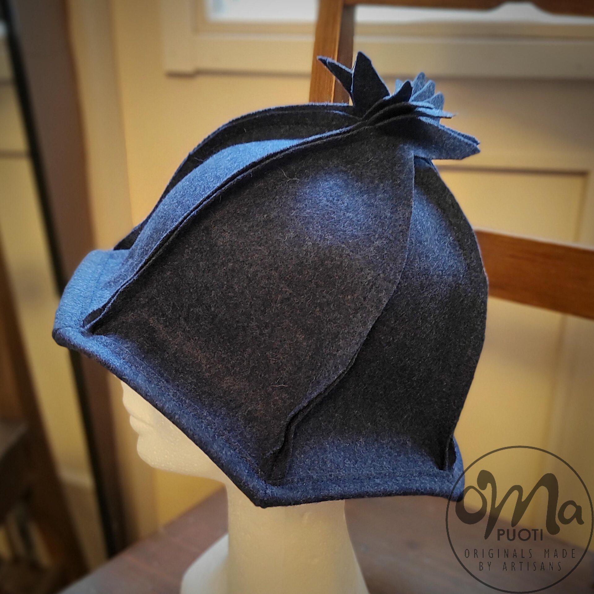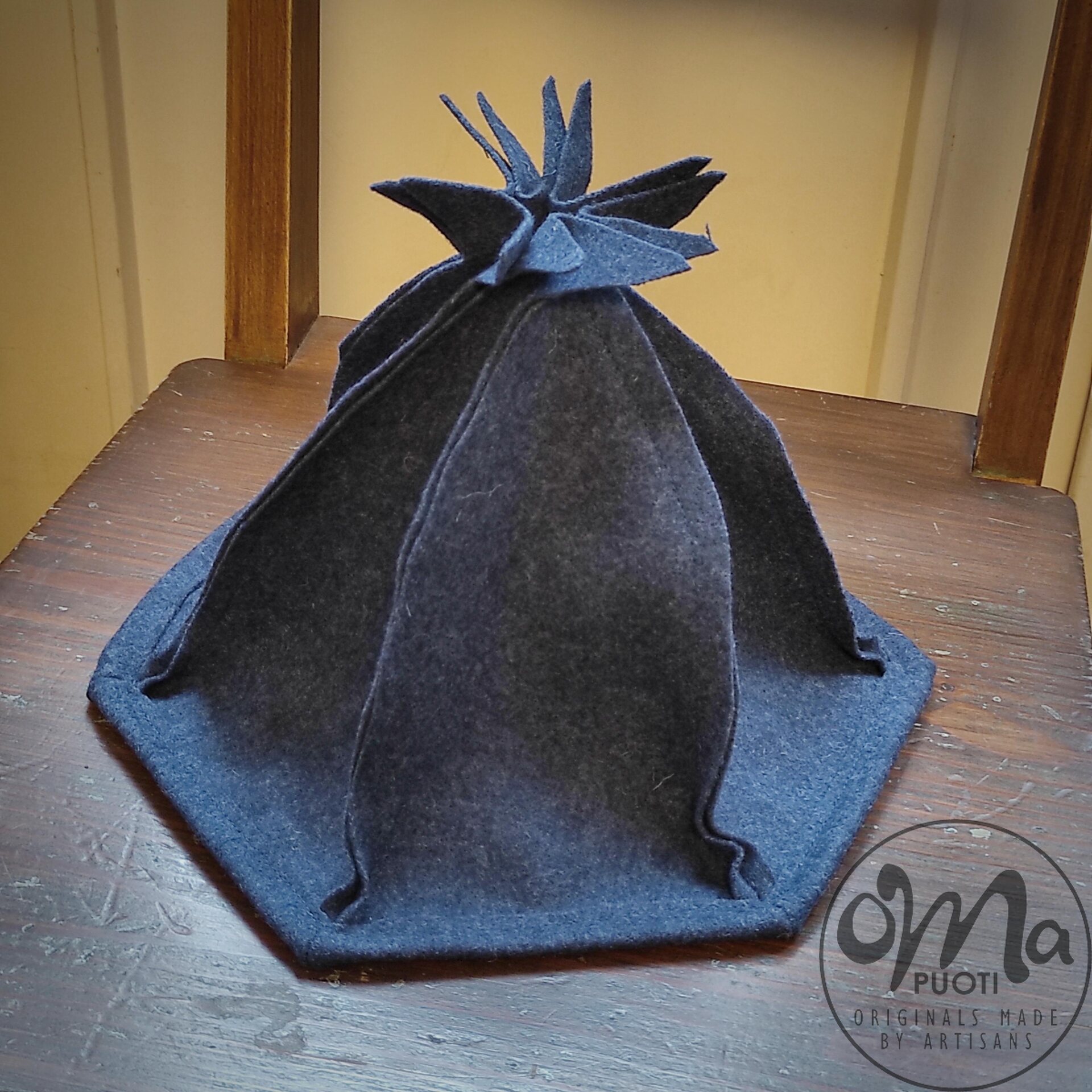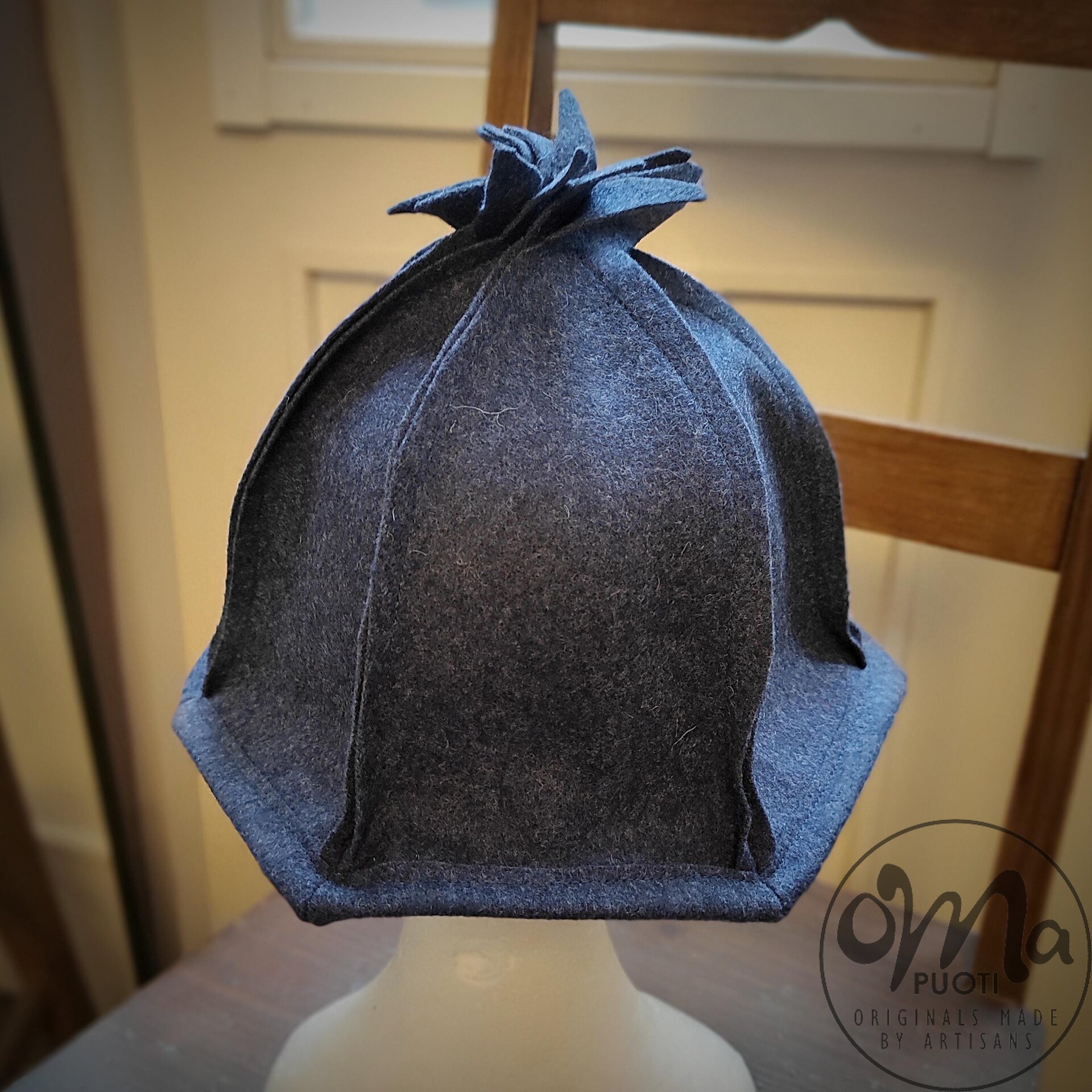 Der von Minna Suuronen hergestellte Sarka-Saunahut aus Filz schützt Haar und Kopf vor der Hitze der Sauna.