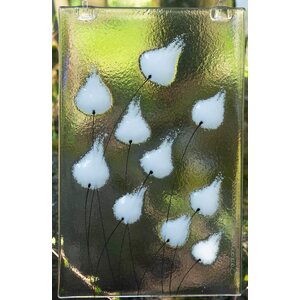 Este trabajo de vidrio está hecho por fusión y se ve mejor cuando se cuelga en la ventana donde la luz del sol brilla a través de él. Las dimensiones de los productos hechos a mano y la ubicación de los sujetos pueden variar ligeramente.