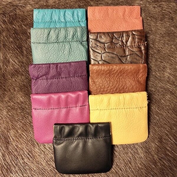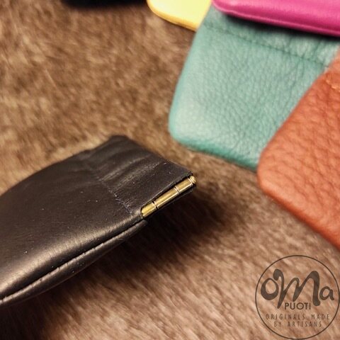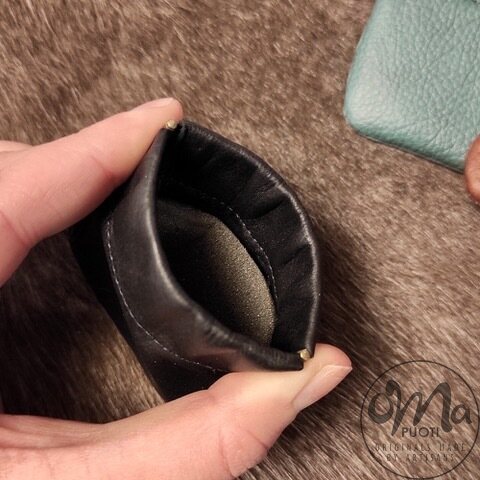 Käsin Suomessa valmistettu näppärä nahkainen pikku pussukka esimerkiksi kolikoille, koruille, pillereille tms.