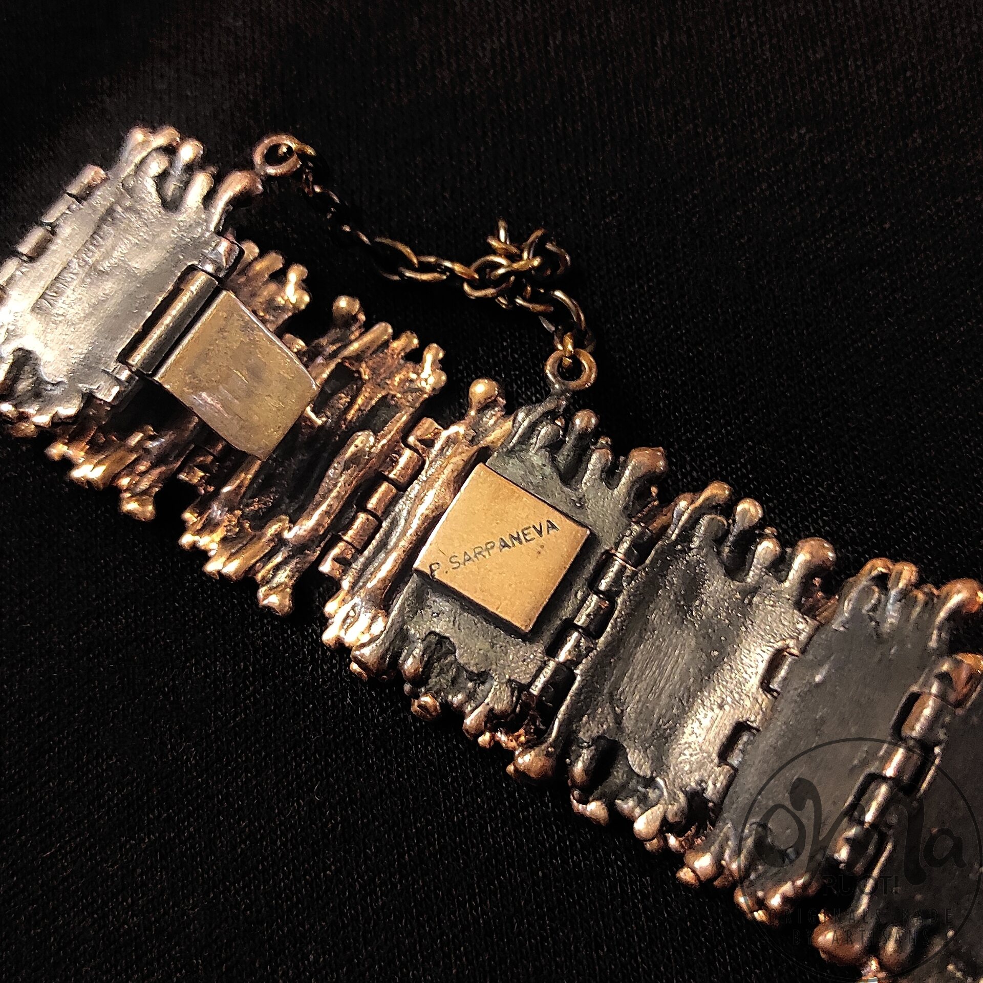 Pentti Sarpanevan suunnittelema pronssinen rannekoru. Turun hopea.